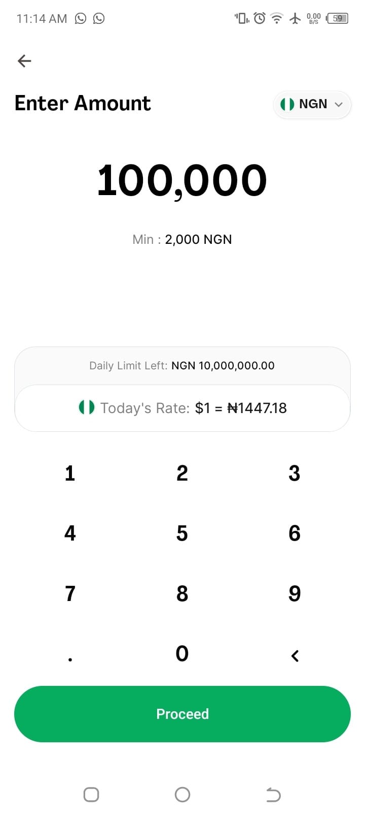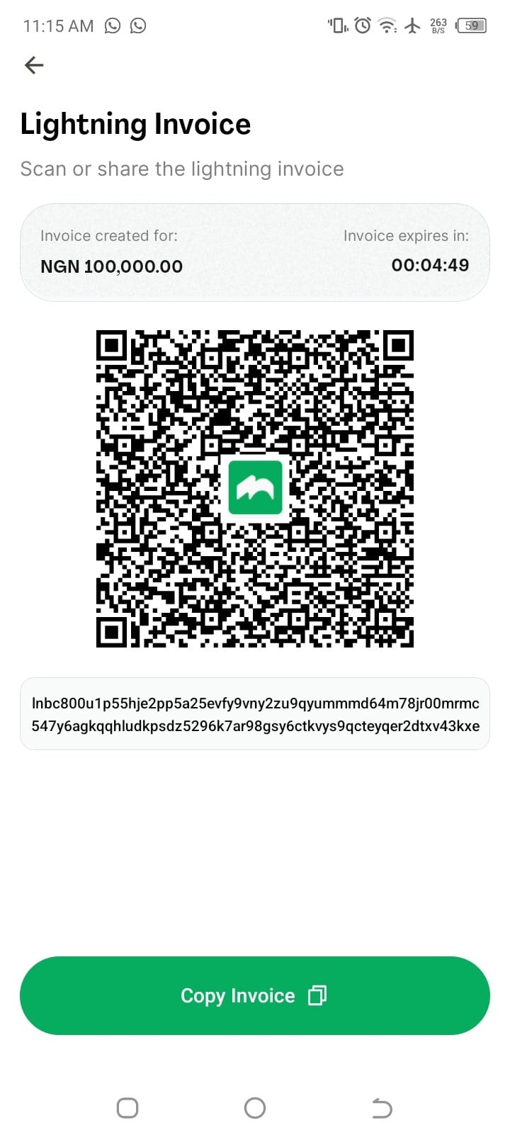 After clicking Receive Payment, input the amount you wish to receive, you can enter an amount in Naira or Sats.