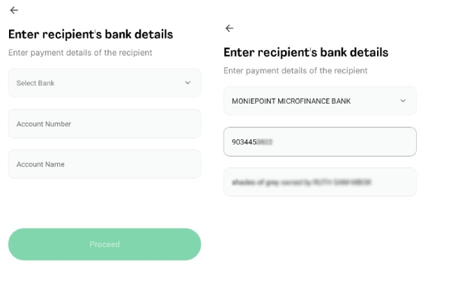 Input the beneficiary account details (merchant or vendor or supermarket account)