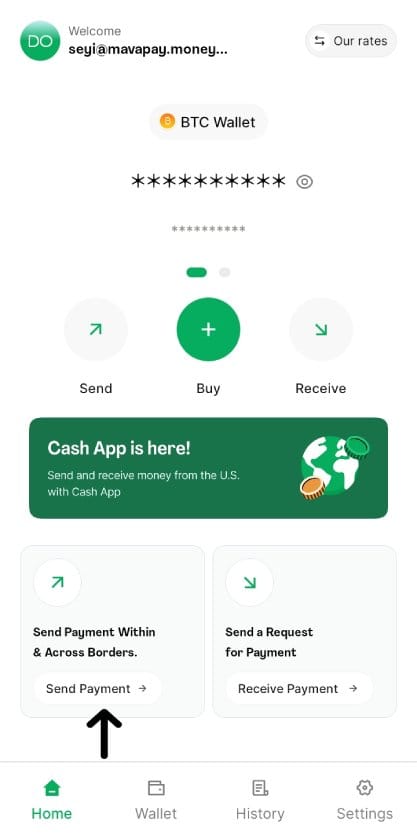 Fire up your Mavapay Money App, ensure you have verified your identity.