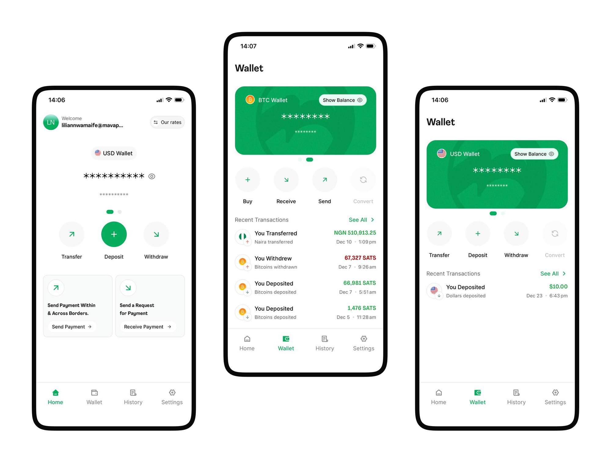 - Hold two secure wallets, one for Bitcoin and one for USD, giving you flexibility and control over your funds.