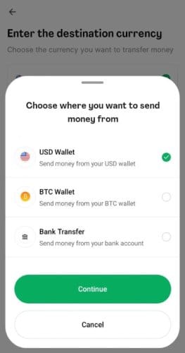 Select where you want to send the money from.