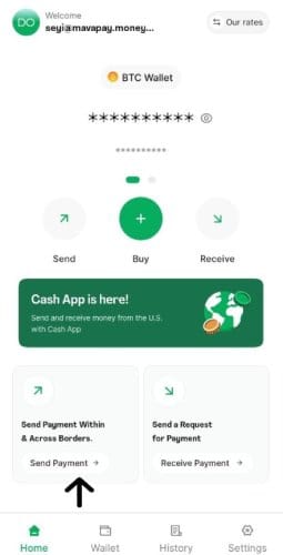 Click Send Payment in the Mavapay Money App menu