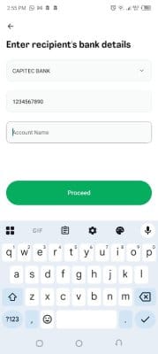 The recipient in South Africa will receive the funds directly in their South African bank account within a few minutes.